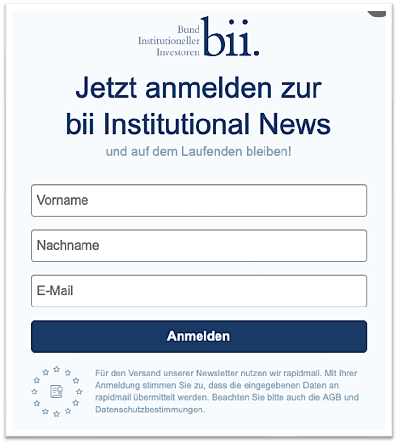 Jetzt anmelden zur bii Institutional News und auf dem Laufenden bleiben!